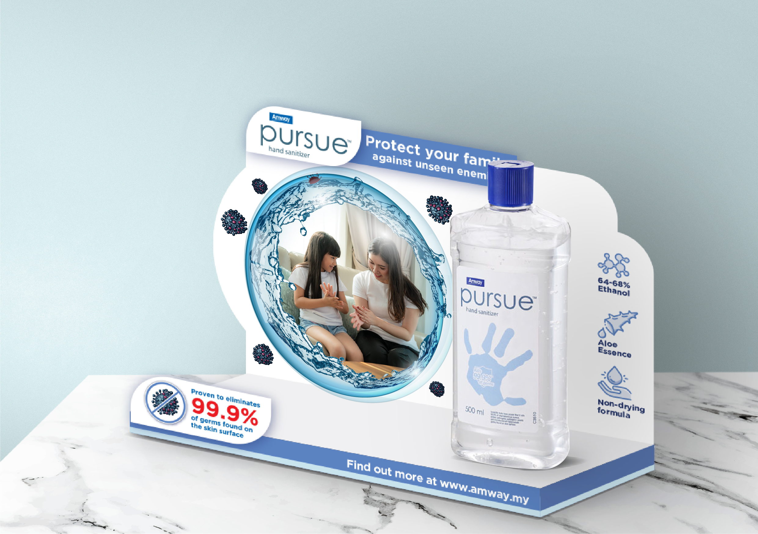 Pursue Hand Sanitizer has antibacterial properties and is easy to use. Scientific tests have proven that it destroys bacteria found on the skin surface.